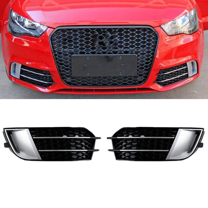 Δίχτυ Προφυλακτήρα Εμπρός Πλαινό Για Audi A1 8X 2010-2014 RS1 Look Γυαλιστερό Μαύρο / Ασημί Αριστερό & Δεξί 2 Τεμάχια