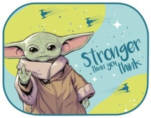 Ηλιοπροστασίες πλαινές με παιδική παράσταση (THE MANDALORIAN) πολωνικής προέλευσης της εταιρίας Amio. Τοποθετούνται στα πίσω τζάμια των επιβατών του αυτοκινήτου για την προστασία από τις αχτίδες του ήλιου στο εσωτερικό της καμπίνας του οχήματος.