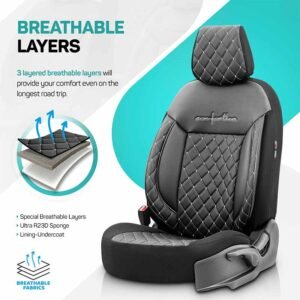 Special Airbag Stitch : Κατάλληλα για καθίσματα εξοπλισμένα με πλευρικούς αερόσακους, καθώς ακολουθούν τα Ευρωπαϊκά στάνταρ, για πιο ασφαλής οδήγηση.