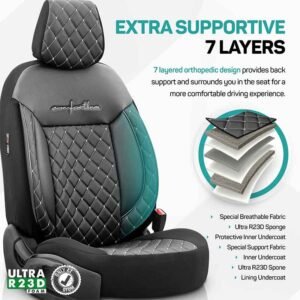 Extra Supportive 7 Layers : Ορθοπεδικός σχεδιασμός 7 στρώσεων στα πλαϊνά ώστε να παρέχεται στήριξη στην πλάτη και τη μέση . Προλαμβάνει τον πόνο και αυξάνει την οδηγική άνεση.