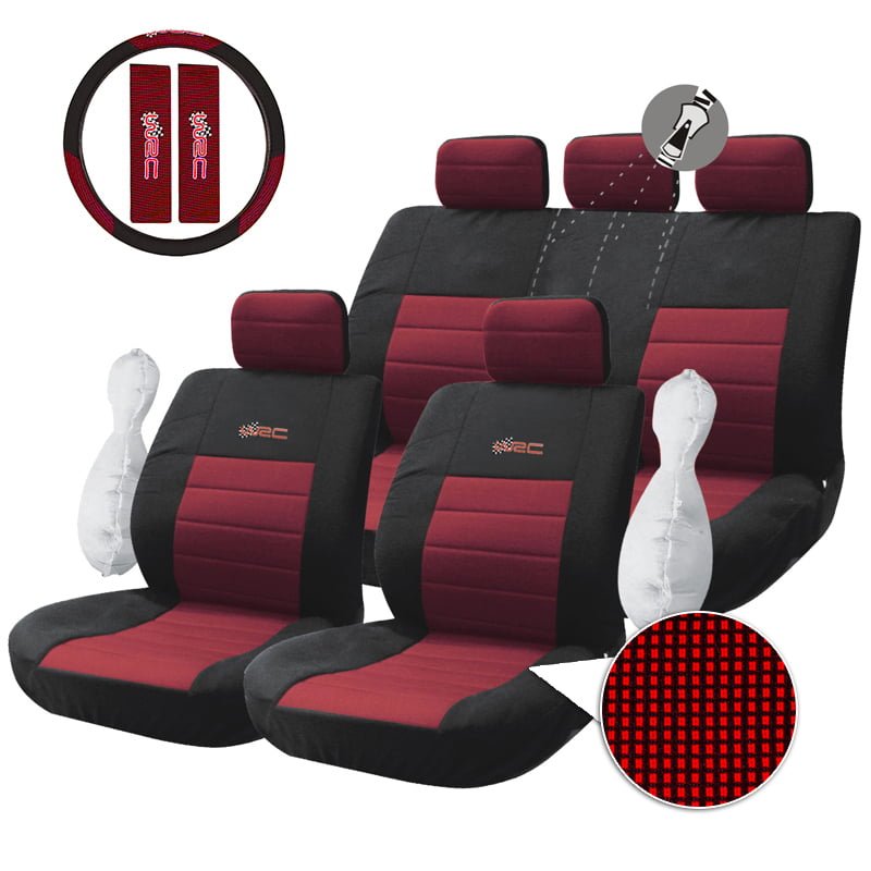 Καλύμματα ΣΕΤ Universal με Αποσπώμενο Κεφαλάρι (Ύφασμα) WRC 12 τμχ Διαιρούμενα + Καλύμματα Ζωνών και Τιμονιού Συμβατό με Αερόσακ – ΜΑΥΡΟ/ΚΟΚΚΙΝΟ
