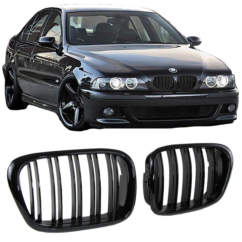 Καρδιές Μάσκας Για Bmw 5 E39 96-03 M4 Look Με Διπλή Γρίλια Μαύρο Γυαλιστερό 2 Τεμάχια