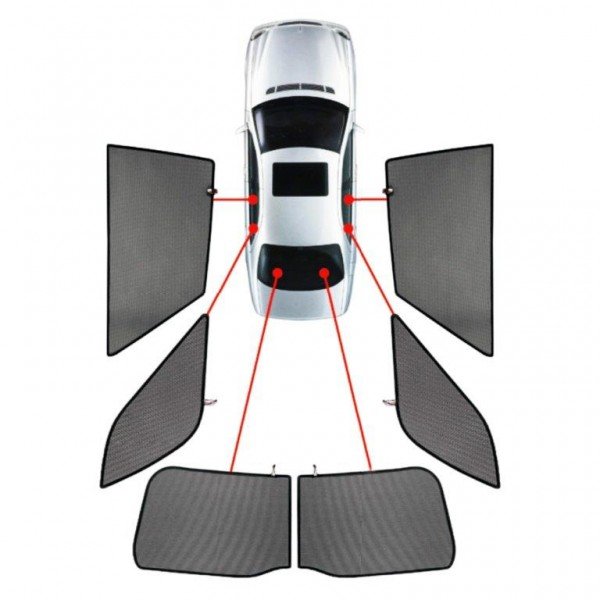 Κουρτινάκια για ηλιοπροστασία από την εταιρία CAR SHADES, βρετανικής κατασκευής και προέλευσης, ειδικά σχεδιασμένα για ταιριάζουν ακριβώς στα πίσω παράθυρα και το πίσω παρμπρίζ του οχήματος. Κατασκευασμένα από υψηλής ποιότητας διάτρητο υλικό σε μαύρο χρώμα, προσφέρουν 100% ιδιωτικότητα, κάλυψη, αντιηλιακή προστασία από UV ακτινοβολία και κομψή αισθητική.