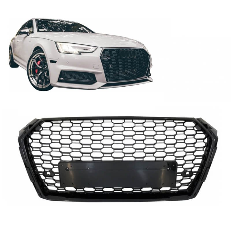 Μάσκα Για Audi A4 B9 16-19 RS4 Look Κυψελωτή Γυαλιστερό Μαύρο 1 Τεμάχιο