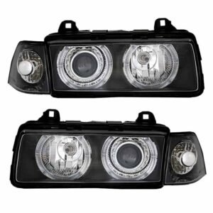Μπροστινά Φανάρια Set Για Bmw 3 E36 92-98 Coupe/Cabrio Angel Eyes Μαύρα H7/H7 Depo