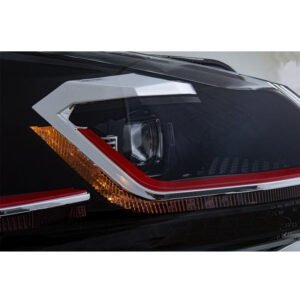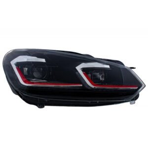 Μπροστινά Φανάρια Set Για Vw Golf VI (6) 08-12 DRL & Led Signal Dynamic Look Golf 7,5 Μαύρα Με Κόκκινη Γραμμή H7 Με Μοτέρ Carner