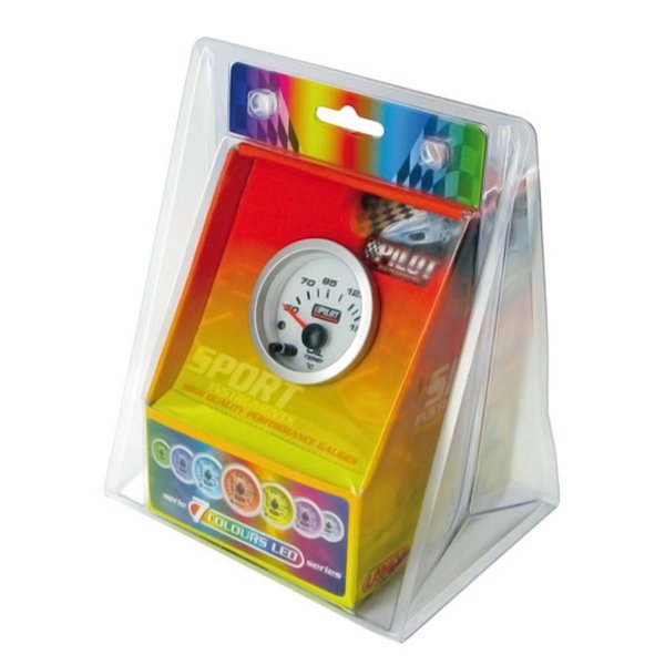Θερμοκρασία Λαδιού Pilot (7 χρωμάτων). Δυνατότητα επιλογής φωτισμού σε 7 χρώματα με το πάτημα ενός κουμπιού. Περιλαμβάνεται ο αισθητήρας. Πλαίσιο από αλουμίνιο. Για τοποθέτηση εσωτερικά στο ταμπλό ή σε ειδική βάση οργάνων. Διάμετρος οργάνου: 52mm (2″).