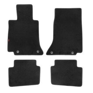 Πατάκια αυτοκινήτου από την εταιρία LAMPA, ιταλικής προέλευσης, κατασκευασμένα από υψηλής ποιότητας μοκέτα – 100% πολυπροπυλένιο – σε μαύρο χρώμα με περιμετρικό φινίρισμα από βελούρ ρέλι (απομίμηση βελούδου), σχεδιασμένα για να ταιριάζουν ακριβώς στις διαστάσεις του δαπέδου του εκάστοτε οχήματος – μαρκέ προϊόν. Είναι αδιάβροχα και διαθέτουν αντιολισθητικό πάτο ενισχυμένο με gel στο πίσω μέρος τους για καλύτερη πρόσφυση στο δάπεδο, καθώς και κουμπιά στερέωσης fix-points για όσα οχήματα είναι εξοπλισμένα με αντίστοιχες εργοστασιακές υποδοχές για να παραμένουν σταθερά στο πάτωμα της καμπίνας κατά την είσοδο/έξοδο των επιβατών.