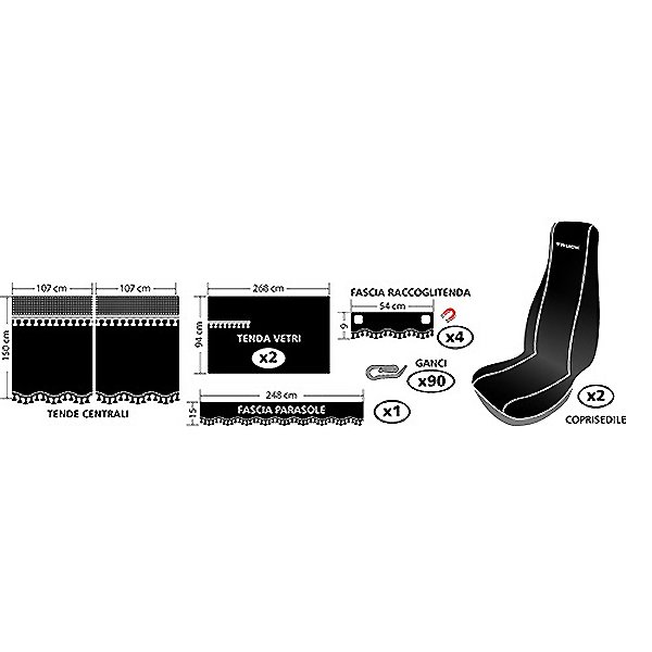 Σετ καλύμματα – κουρτινάκια – σκίαστρα φορτηγού Melissa (Μαύρο), 11 τεμάχια. Διεθνή και εύκολα στην τοποθέτηση.