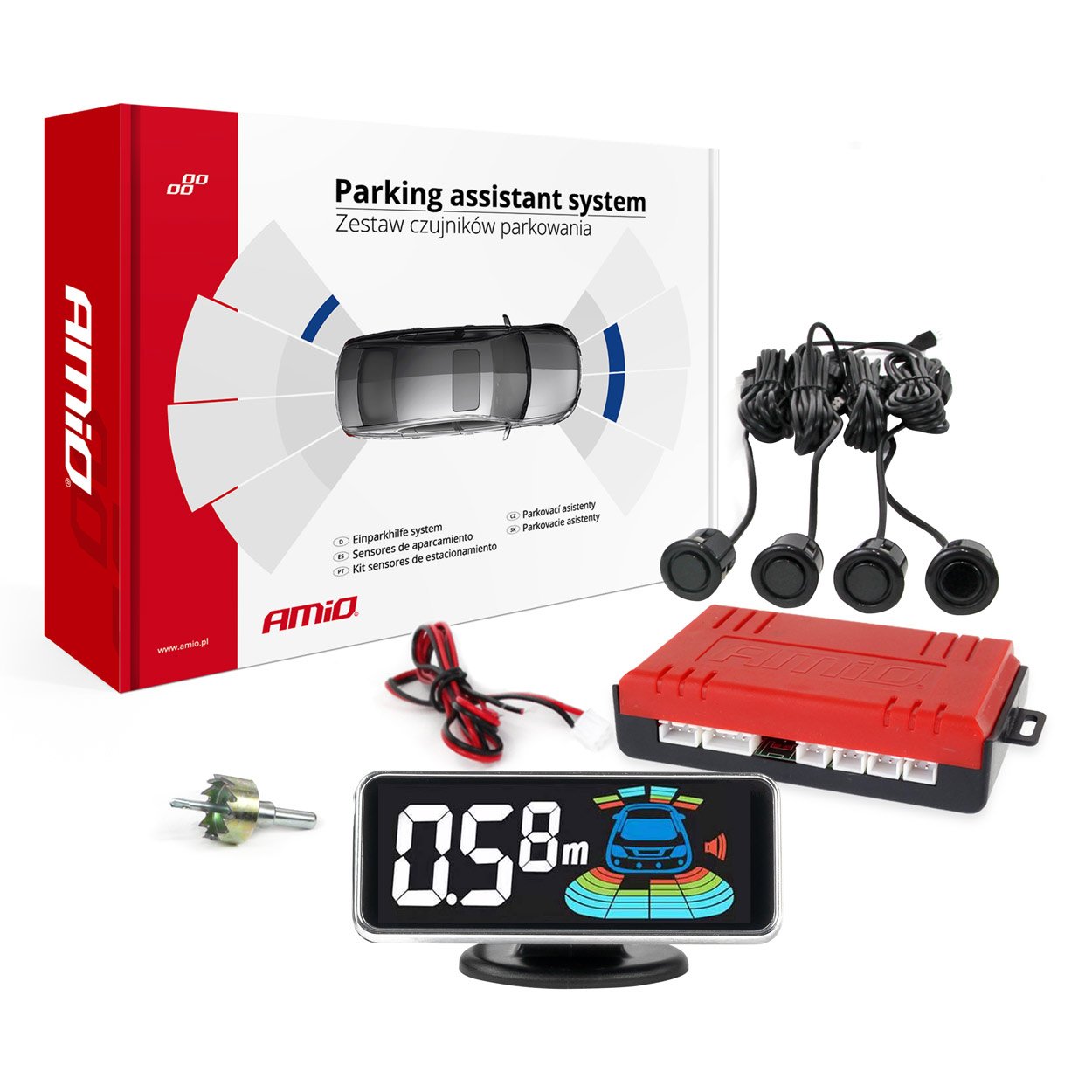 Σύστημα παρκαρίσματος με 4 αισθητήρες σε μαύρο χρώμα με ήχο και οθόνη led από την εταιρεία AMiO, πολωνικής προέλευσης,