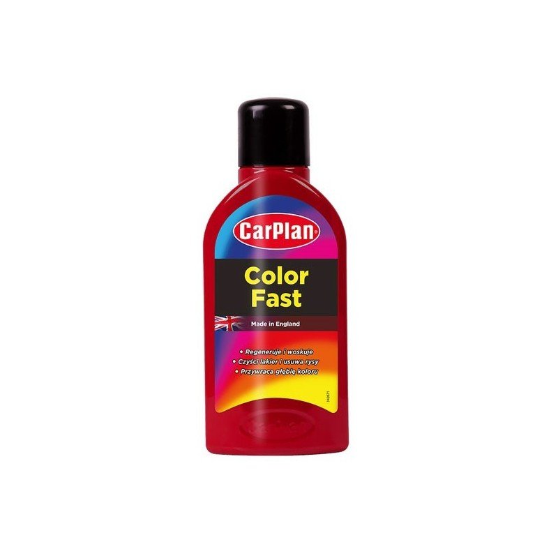 Κρέμα επιδιόρθωσης και προστασίας βαφής χρώματος της σειράς Color Fast , αγγλικής προέλευσης της εταιρίας Carplan . Ένα εξαιρετικό προιον που καθαρίζει και ανανεώνει τη βαφή του οχήματος , αφαιρώντας την οξειδωμένη επιφάνεια, βελτιώνοντας την όψη των μικρογρατζουνιών και τις ατέλειες (στίγματα, κηλίδες, διχρωμίες) που είναι προσκολλημένες στη βαφή. Τα προηγμένα πολυμερή κεριά που βρίσκονται στη σύνθεση της κρέμας, χαρίζουν ένα λαμπερό φινίρισμα στο χρώμα του οχήματος και ένα προστατευτικό φιλμ που διαρκεί. Το προιόν εμπεριέχει στη σύνθεσή έντονο χρώμα, το οποίο αποκαθιστά και ενισχύει το ήδη υπάρχον.Ιδανικό προιόν για να ανανεώσετε το ξεθωριασμένο χρώμα του αυτοκινήτου σας και να βελτιώσετε την οψη του από μικρογρατζουνιές και ατέλειες.