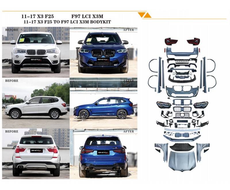 Body Kit Για Bmw X3 F25 2011-2017 Upgrade To X3M Competition F97 LCI Look Με Προυλακτήρες, Φτερά, Καπό, Φανάρια
